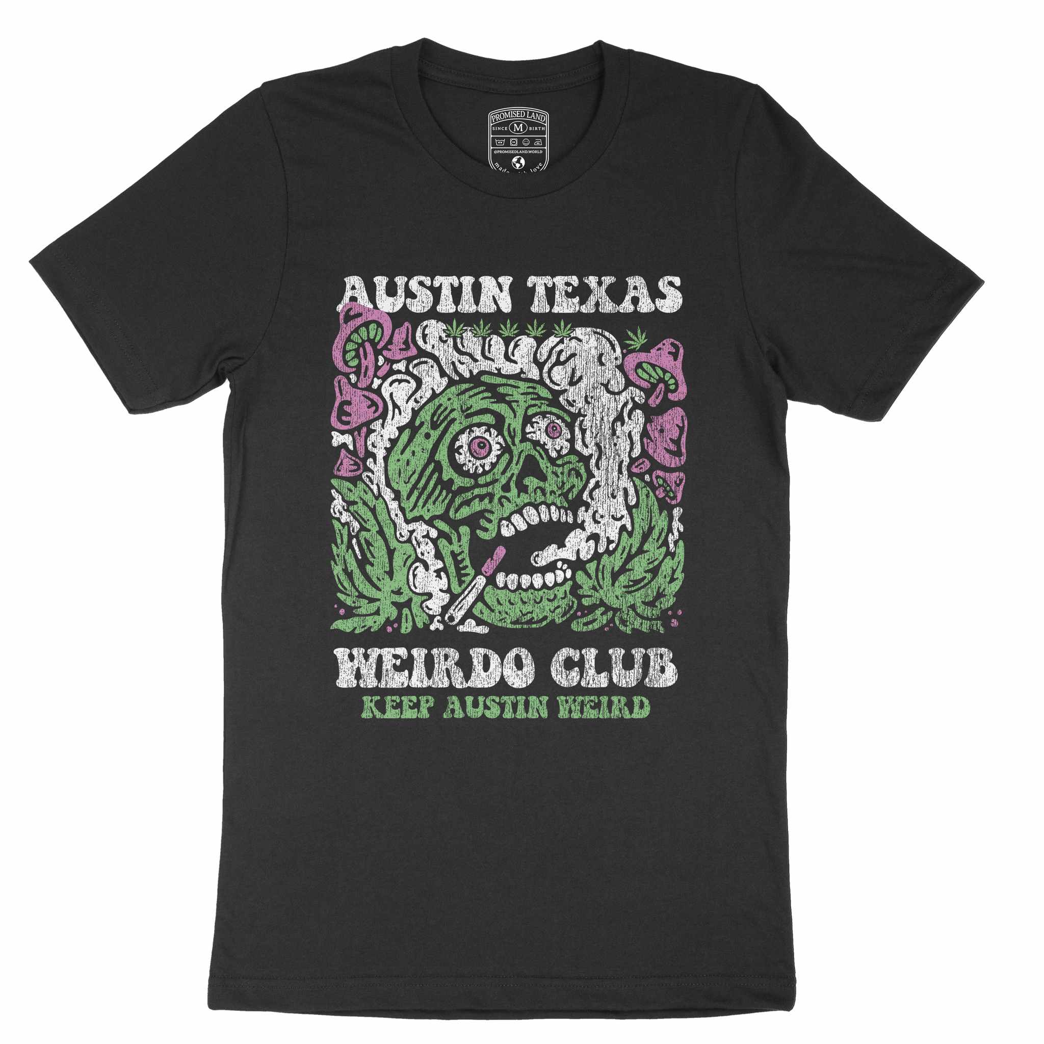 Show your Austin pride with the Psychedelic Skull T-Shirt. This lightweight t-shirt features a bold print design that captures the spirit of Austin.