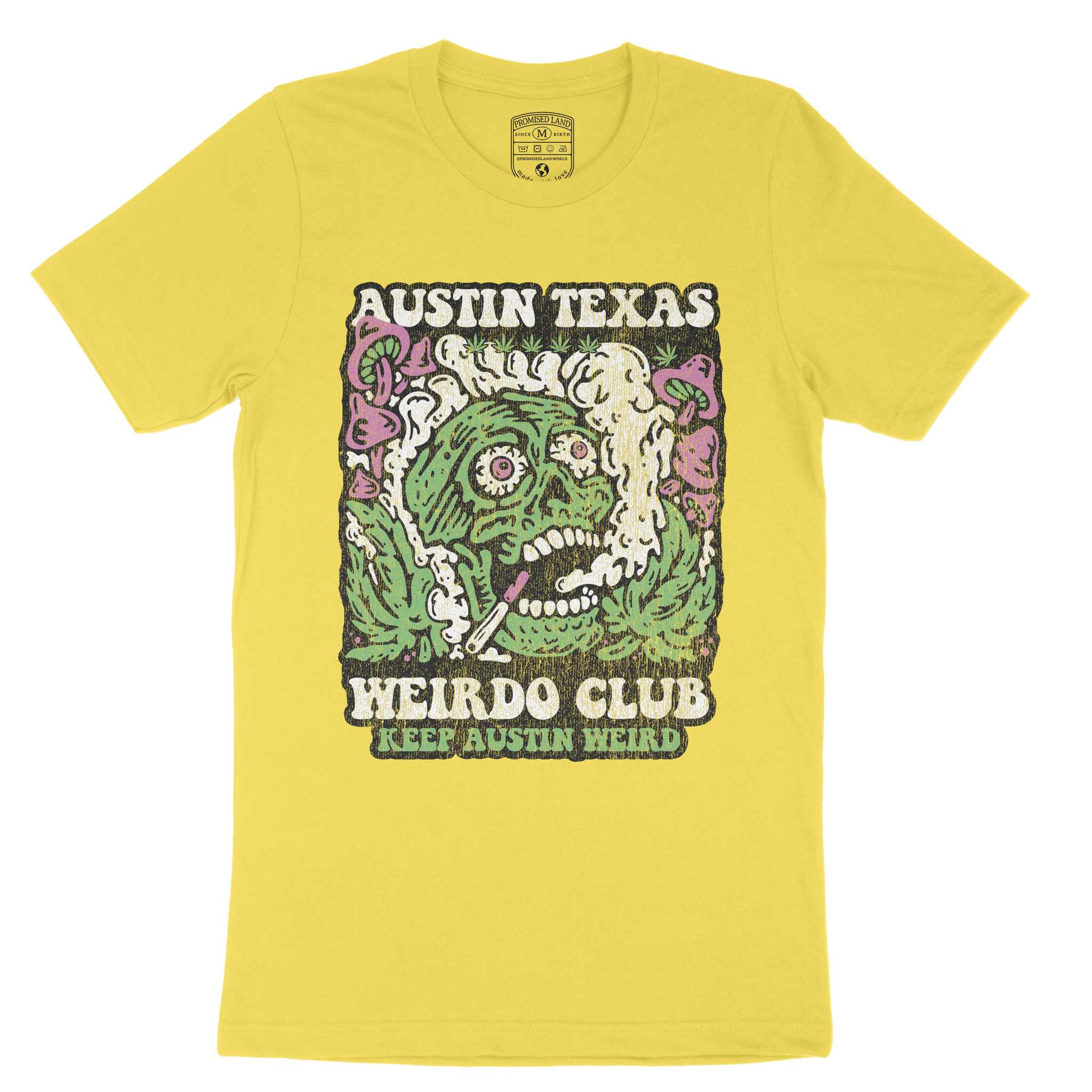 Austin Psychedelic Skull T-Shirt Yellow front