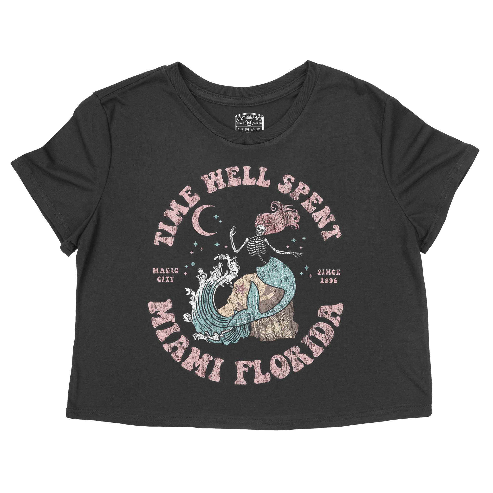 Miami Mermaid Skeleton Cropped Tee