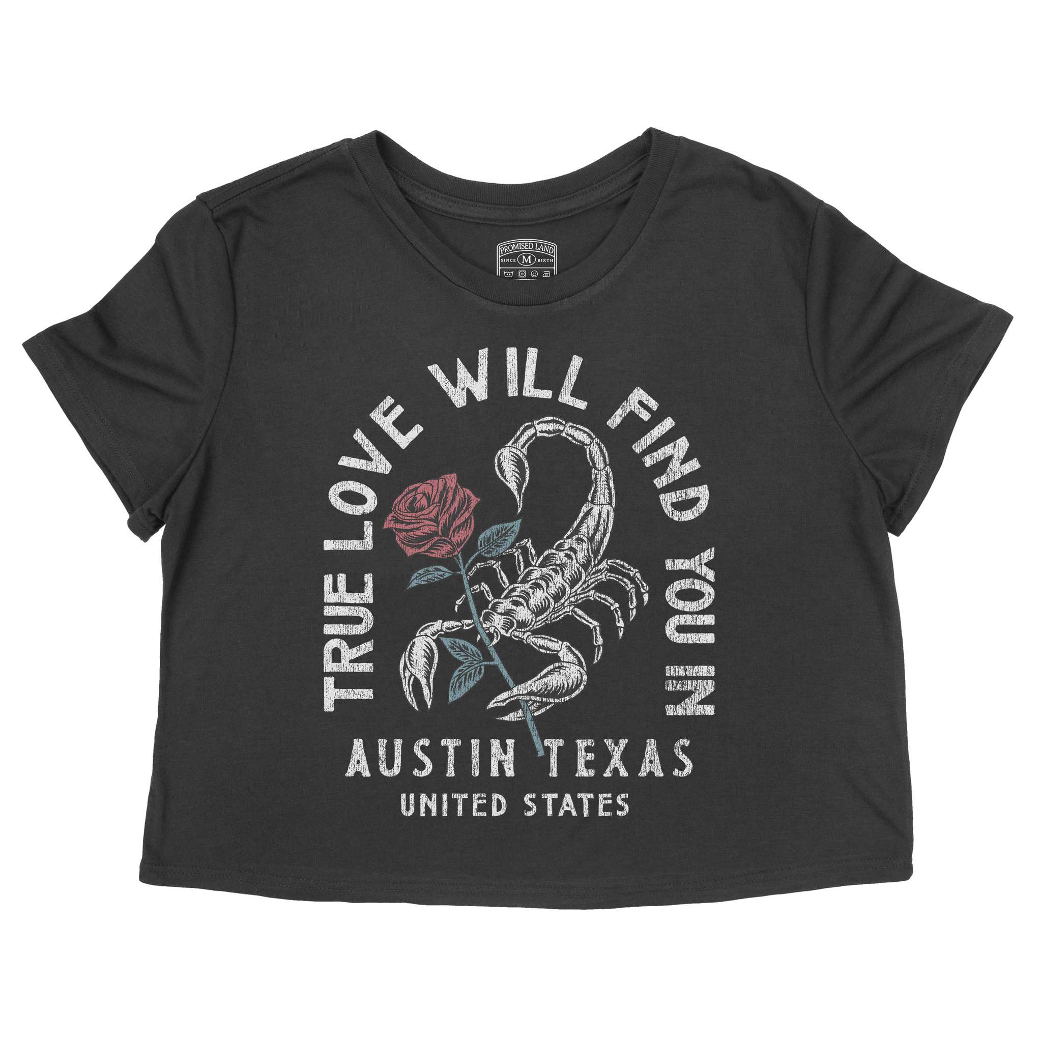 Austin Scorpion Rose Cropped Tee Black front