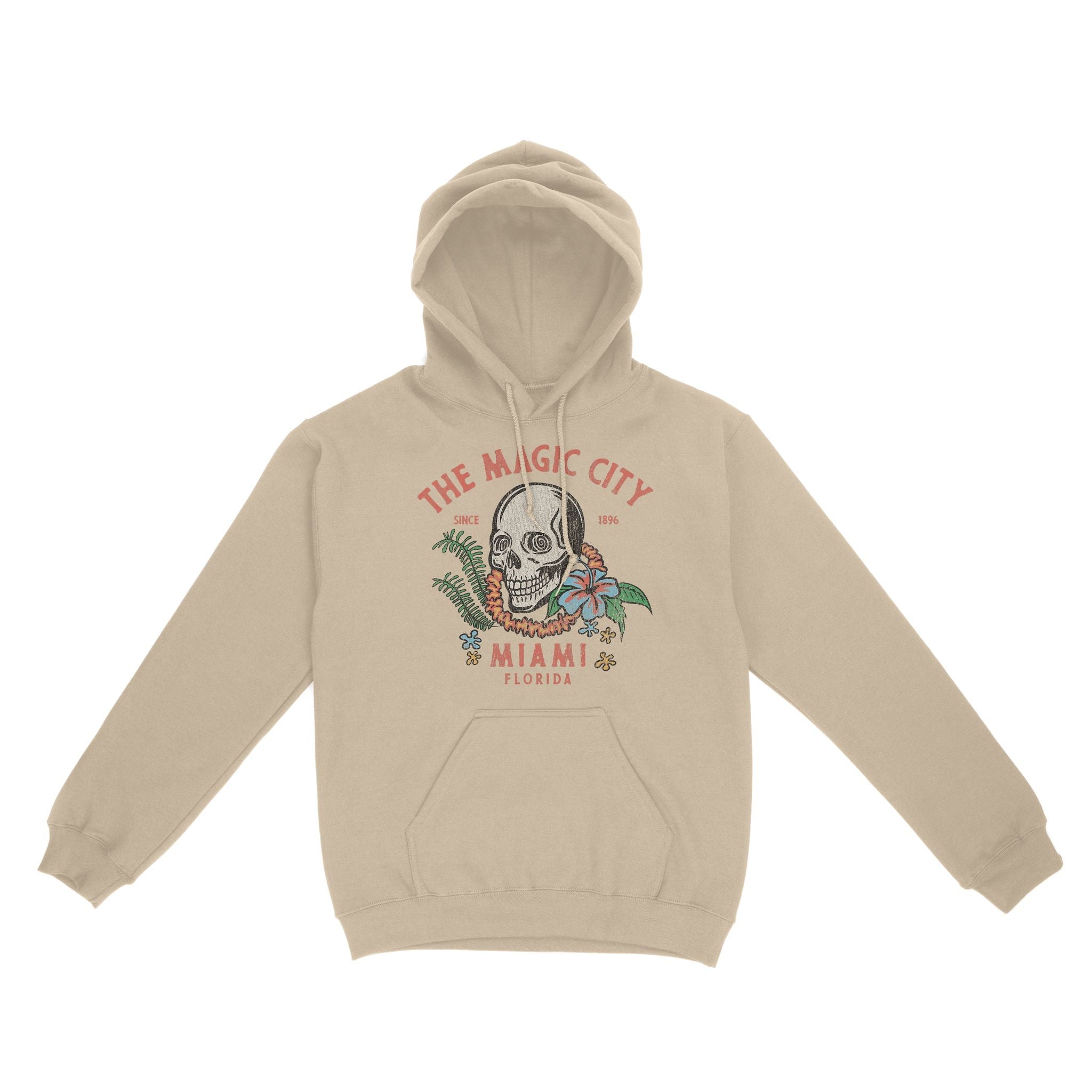Miami Skull Tropical Hoodie Sand front