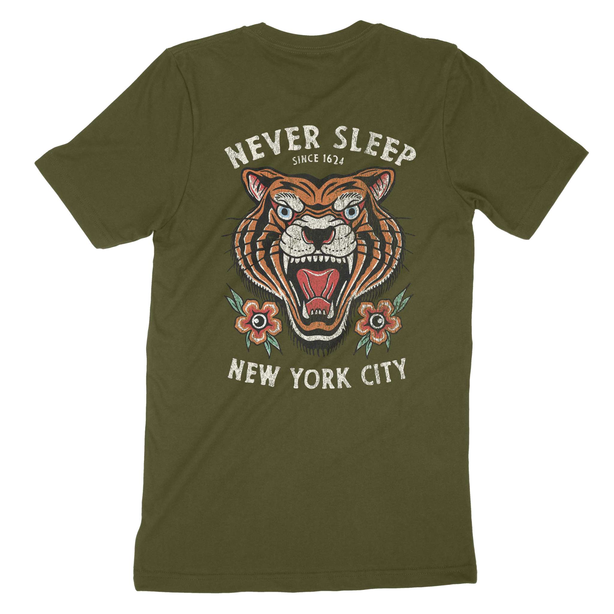 New York Tiger Tough T-Shirt Olive back